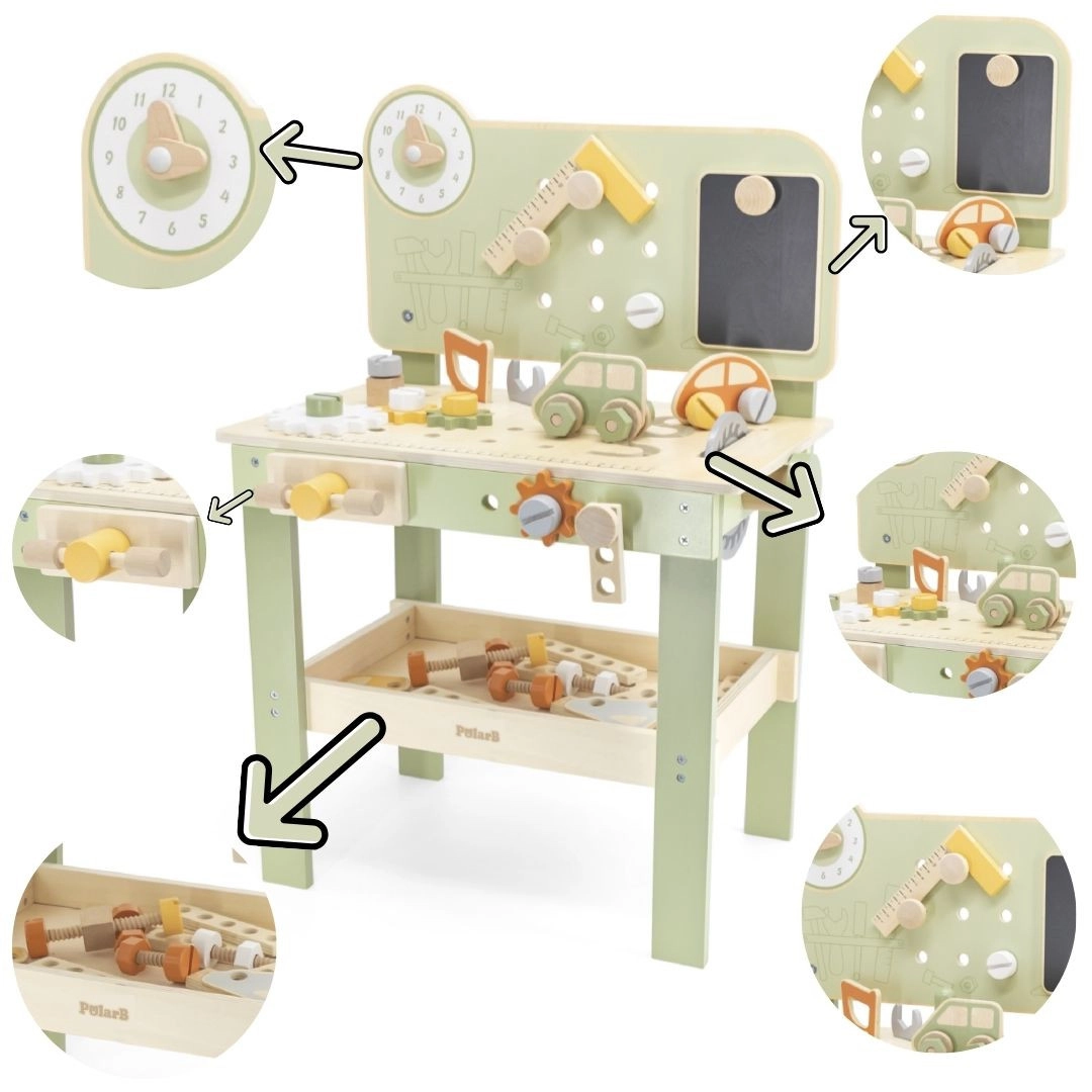 Montessori dílna přináší kreativní a smysluplnou hru: děti plánují, měří, spojují díly a opravují, čímž posilují logické uvažování i sebevědomí. Ergonomické rozměry, hladké hrany a kvalitní materiály zajišťují pohodlné uchopení a dlouhou životnost pomůcek. Vyberte vybavení pro dílnu pro děti a podpořte jejich radost z objevování a reálné pracovní návyky.