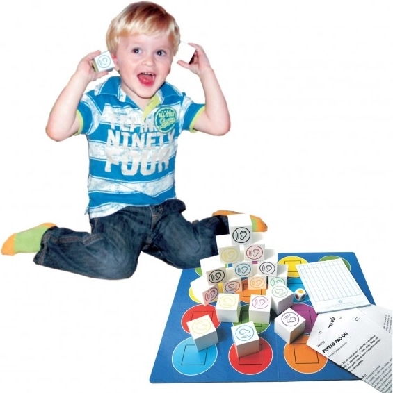 - 16 zvukových kostek, hrací kostka s barvami, hrací deska s barevnými poli