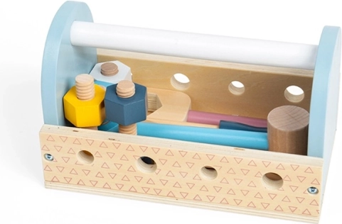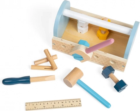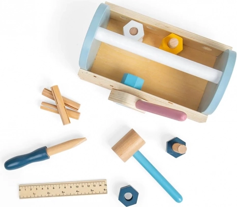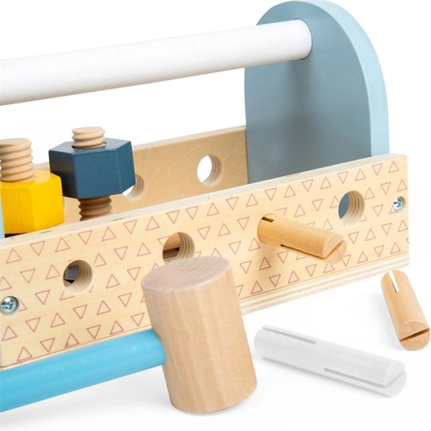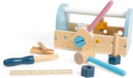 Dřevěná přepravka s nářadím je ideální volbou pro první opravářské výpravy. Děti mohou zatloukat, utahovat i měřit a při hře rozvíjejí koordinaci ruka–oko, trpělivost a slovní zásobu. Kompaktní rozměry a praktická rukojeť umožní vzít si sadu kamkoli.