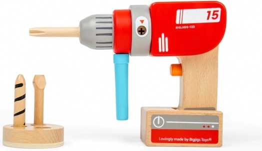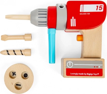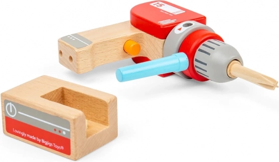 Tato dřevěná vrtačka věrně napodobuje skutečné nářadí, ale bez elektřiny a ostrých částí. Děti mohou ručně otáčet hlavou vrtačky, přepínat imaginární režimy pomocí klikacího tlačítka a snadno nasazovat magnetické vrtáky a šrouby. Ideální pro hry na stavění poliček či nábytku a rozvoj praktických dovedností.
