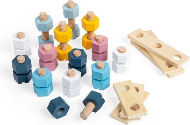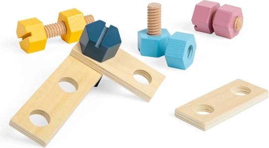 Šroubování, přitahování a spojování dílků přirozeně rozvíjí obratnost prstů, koordinaci ruka–oko a trpělivost dětí od 18 měsíců.