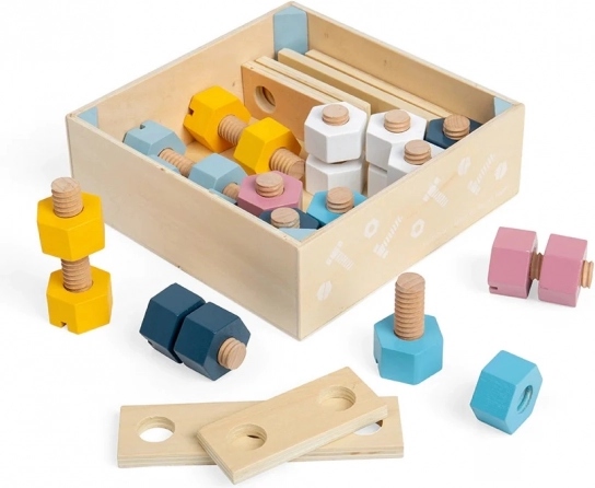 Bigjigs dřevěná přepravka s maticemi a šrouby
