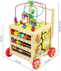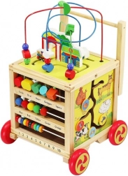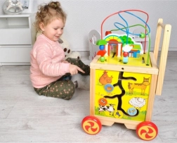 Dřevěný chodítko a edukační kostka je perfektním pomocníkem pro vaše dítě při jeho prvních krocích a zároveň nabízí množství interaktivních aktivit pro rozvoj motoriky a kognitivních dovedností.