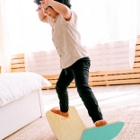 Univerzální balanční deska LULILO AJLO s protiskluzovou plstí v elegantní tyrkysové barvě podporuje rozvoj rovnováhy, koordinačních schopností a hrubé motoriky. Odolná buková překližka, hladké hrany a filcový spodek pro bezpečné houpání bez klouzání na podlaze. Skvělá pro děti od 3 let i dospělé – na cvičení, hru i relax.