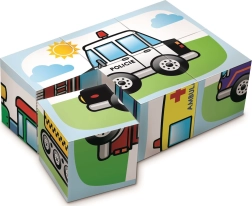 Sestavte si svět vozidel s tradičními dřevěnými kostkami vyrobenými v ČR. Z šesti obrázkových kostek poskládáte šest různých dopravních prostředků a při hře děti rozvíjejí jemnou motoriku, prostorovou představivost i fantazii. Kvalitní smrkové dřevo, zdravotně nezávadné provedení a nadčasový design potěší kluky i holčičky od 3 let.