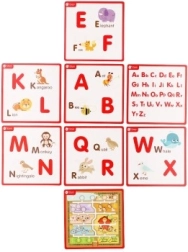 Chytrá a zábavná pomůcka pro předškoláky: oboustranná deska ukrývá dva světy. Na farmě děti posouvají kolíky se zvířátky, obličeji a ovocem po vyfrézovaných drahách na jejich místo. Otočením desky se změní na abecední labyrint – úkolem je dovést kolík s počátečním písmenem ke správnému zvířátku (názvy jsou v angličtině), takže se hravě procvičí písmena i slovní zásoba.