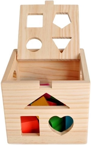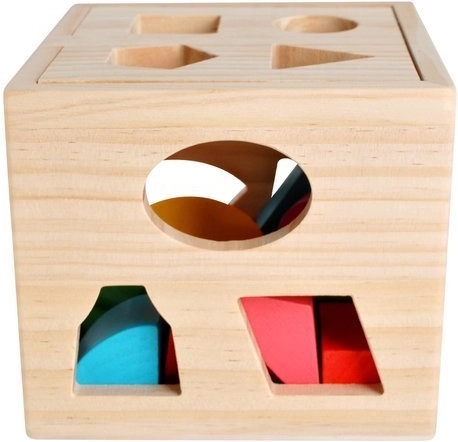 Děti si procvičí logické myšlení, jemnou motoriku i koordinaci oko–ruka při hledání správných otvorů pro 13 barevných tvarů.