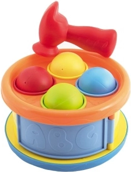 Zatloukačka a Bubínek 2v1 nabízí dvě hračky v jedné – zatloukání kuliček s kladívkem a hru na bubínek. Tento pestrý a interaktivní produkt podporuje vývoj klíčových schopností u dětí.