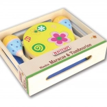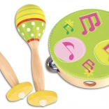 Hudební sada pro malé muzikanty přináší zábavu, rozvoj rytmu a jemné motoriky. Obsahuje 2 dřevěné rumba koule a tamburínu s 8 činely – ideální pro první hudební pokusy a domácí vystoupení.