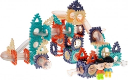 Barevná stavebnice pro děti od 3 let s celkem 156 prvky umožní postavit vlastní kuličkovou dráhu plnou tunelů, sjezdů a průhledných trubek. Hra rozvíjí jemnou motoriku, logické myšlení a prostorovou představivost, zatímco sledování jízdy kuliček podporuje vizuální vnímání a soustředění.