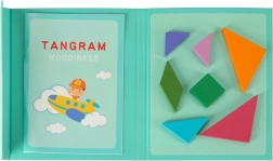 Zábavná a chytrá hra pro děti od 3 let: magnetická knížka s barevným dřevěným tangramem. Díky magnetům mohou děti skládat tvary kdekoliv, bez ztrácení dílků. Součástí je knížka s 96 předlohami v barevné i černobílé verzi. Podporuje logické myšlení, kreativitu a jemnou motoriku – ideální Montessori pomůcka na doma, na cesty i do školy.