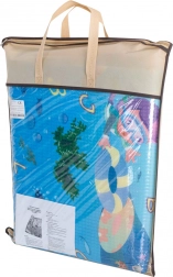 Odolný povrch stačí otřít vlhkým hadříkem. Podložku snadno složíte a uložíte do přenosného obalu.