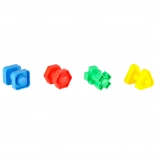 Jednotlivé šrouby a matice mají různé tvary, které je potřeba správně spárovat. Díky jednoduchému principu je stavebnice vhodná pro předškoláky a skvěle podporuje prostorovou představivost a trpělivost.