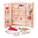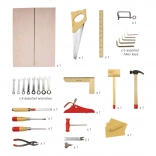 Dřevěný kufřík s nářadím obsahuje vše, co mladý kutil potřebuje. Obsahuje šroubováky, pily, klíče, kladiva, a mnoho dalších nástrojů. Vyrobeno z kvalitních materiálů a splňuje evropské bezpečnostní normy.