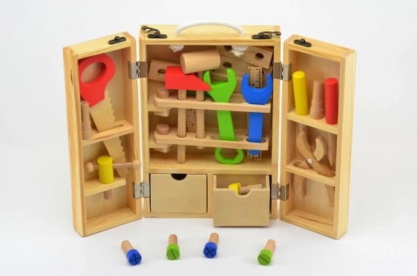 Dřevěné nářadí pro děti v praktickém kufříku! Skvělá sada pro malé kutily, která rozvíjí motoriku a kreativitu.