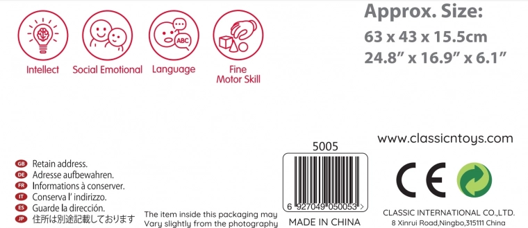 Classic World je renomovaná značka známá svou kvalitou a bezpečností hraček. Vysoce kvalitní výroba splňuje mezinárodní standardy a dává rodičům jistotu, že jejich děti dostávají jen to nejlepší.