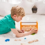 Kreativní dřevěná sada nářadí pro malé opraváře obsahuje 16 kusů robustního nářadí v praktickém dřevěném boxu. Podporuje jemnou motoriku, technické chápání a zručnost. Vyrobeno z kvalitního dřeva, ideální pro děti od 3 let.
