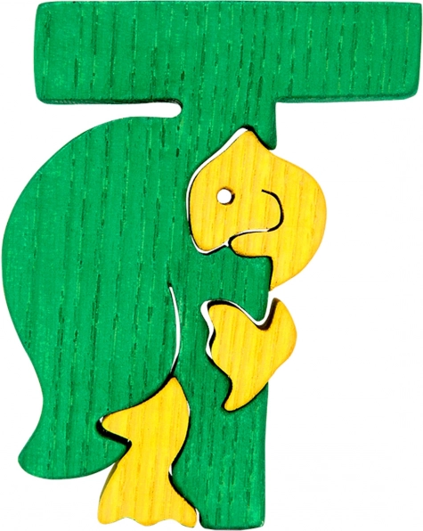 Dětské vkládací písmeno T s motivem želvičky je ideální pomůcka pro první seznámení s abecedou. Díly do sebe hladce zapadají a díky robustnímu zpracování z masivního dřeva zvládnou každodenní hraní. Povrch je ošetřen barvami bezpečnými pro děti.