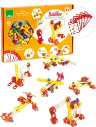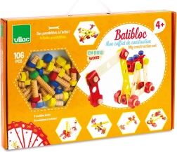 Tato kvalitní dřevěná stavebnice VILAC Batibloc je ideální jako první konstrukční set pro děti od 3 let. Díky barevným i přírodním dílkům s otvory a spojovacím materiálem mohou děti stavět vozidla, letadla i vlastní originální modely a při tom si rozvíjet trpělivost a zručnost.