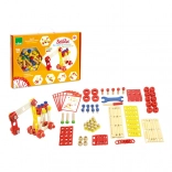 Barevné i přírodní slatě, šrouby, matice, kola a spojky umožní dětem skládat vozidla i fantazijní konstrukce a stále znovu je přestavovat.