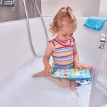 Lehká konstrukce plave na vodě a je bezpečná pro hraní ve vaně i v bazénu. Děti snadno listují a objevují barvy a tvary.