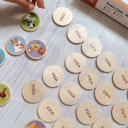 Jak hrát? Rozložte všechny žetony obrázkem dolů, hráči se střídají v otáčení dvou žetonů a snaží se najít shodný pár. Vyhrává ten, kdo nasbírá nejvíce dvojic. Díky pevnému dřevěnému provedení a hladkým hranám je produkt odolný, bezpečný a příjemný na dotek.