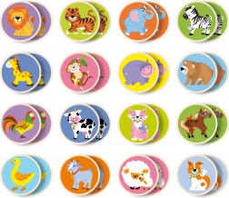 Bohatá sada ilustrovaných žetonů přináší pestrou paletu zvířátek, která děti baví objevovat a párovat. Skvělé pro učení názvů zvířat.