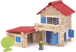 Dřevěná stavebnice domečku ke hrám s figurkami rodin rozvíjí fantazii a stane se ozdobou dětského pokoje. Stavebnice Jeujura Constructions mají dlouhou tradici a patří mezi klasické francouzské hračky. Nabízí série tématicky věnované chaletám, domkům a farmám, ale také divokému západu a středověku. Dají se mezi sebou volně kombinovat a k řadě z nich je také nabízeno příslušenství, figurky a vozidla. Jsou vyráběny ve Francii, z masivního bukového a borovicového dřeva francouzského původu. Dílky stavebnic jsou ošetřeny výhradně za použití barev a laků na bázi vody. Každá sada je balena v praktickém lepenkovém kufříku potištěném rostlinnými inkousty a součástí balení je snadno pochopitelný návod. Hlavní vlastnosti:140 dílků z masivního dřeva a podložkapraktické balenívyrobeno ve Francii