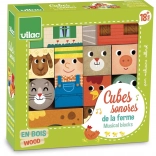 Vilac Dřevěné zvukové kostky Farma jsou zábavné a vzdělávací hračky, které pomáhají dětem rozvíjet motorické dovednosti a objevovat různé zvuky.