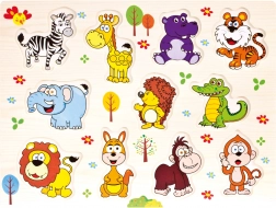 - Edukační zábava: děti poznávají zvířata ze safari a učí se tvary.