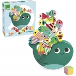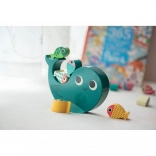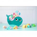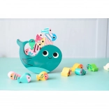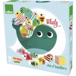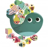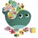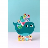 Užijte si zábavnou a vzdělávací aktivitu s touto motorickou balanční hrou. Dřevěná velryba s barevnými rybičkami je ideální pro rozvoj jemné motoriky a koordinace očí a rukou.