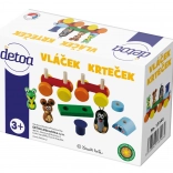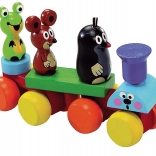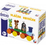 Roztomilý dřevěný vláček z licenční série KRTEČEK od českého výrobce Detoa potěší děti i rodiče. Libovolné skládání a změna pořadí figurek podporují kreativitu, mašinka má dva obličeje – veselý a udivený. Hračka je vyrobena z kvalitního evropského dřeva, je zdravotně nezávadná a balená v pevné papírové krabici.
