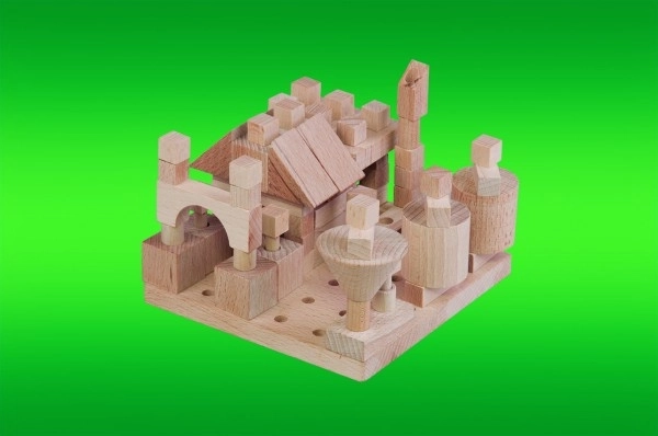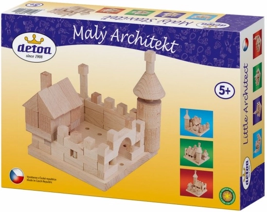 Dřevěná stavebnice Detoa Malý architekt je ideální volbou pro malé konstruktéry. Díky různým tvarům a velikostem dílků mohou děti tvořit nekonečné variace staveb a vzorů. Základní deska s vyvrtanými otvory a tyčemi usnadňuje skládání a podporuje přesnost a trpělivost.