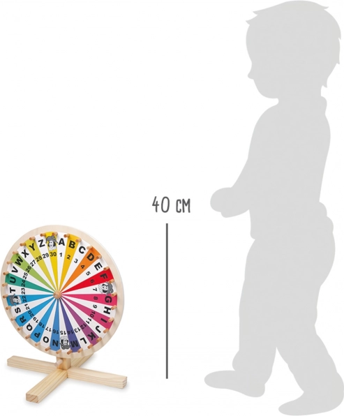 Dřevěné kolo štěstí small foot promění každou aktivitu v napínavou hru. Díky segmentům s písmeny A–Z, čísly 1–30 a čtyřem žolíkům se skvěle hodí pro slovní hry, loterie, vzdělávací aktivity i rodinné soutěže. Barevné provedení podporuje orientaci a udržuje pozornost dětí.