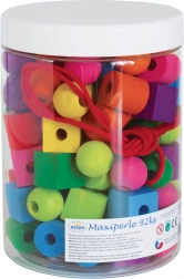 Barevné dřevěné maxiperle jsou ideální pomůckou pro děti od 3 let, které si chtějí procvičovat svou obratnost a zároveň se zabavit. Tato sada obsahuje 92 dílů různých tvarů a barev, které lze navlékat na přiloženou pevnou šňůrku.