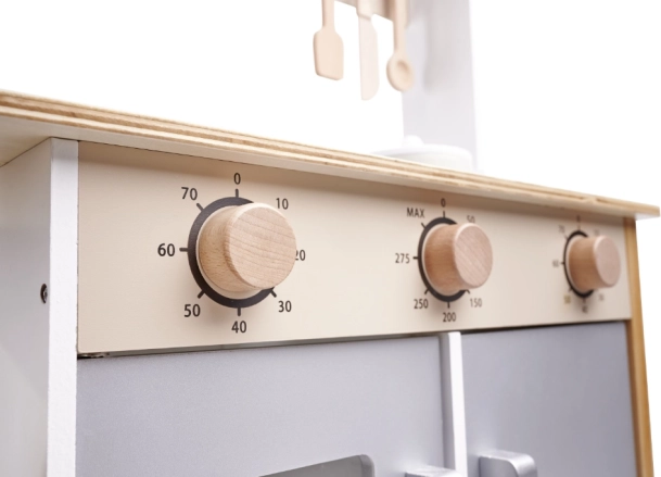 Realistické ovládání: Knoflíky sporáku jsou navrženy tak, aby vypadaly jako skutečné, a snadno se s nimi otáčí, což zaručuje, že si s nimi děti poradí bez námahy.