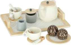 Vše na jednom podnose: konvička, šálky, podšálky, mléčenka, cukřenka, lžičky i sladká tečka. Děti mohou realisticky servírovat a trénovat společenské dovednosti.
