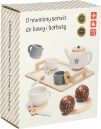 Stylový dřevěný čajový servis pro děti přináší hodiny kreativní hry a rolových scén. Obsahuje podnos, konvičku s víčkem, šálky se spodky, cukřenku, mléčenku, lžičky a dřevěné dobroty. Hladce broušené dřevo je bezpečné pro děti a láká k společné hře a rozvoji jemné motoriky.