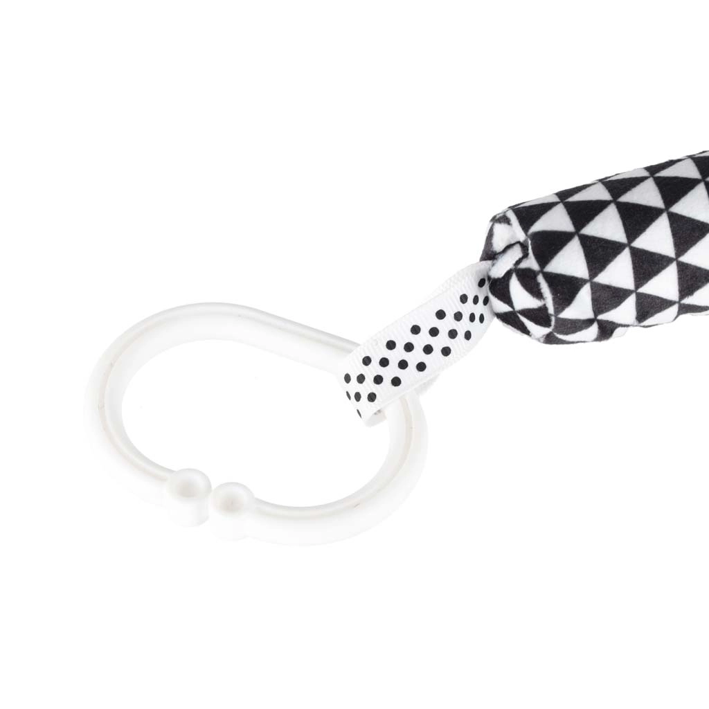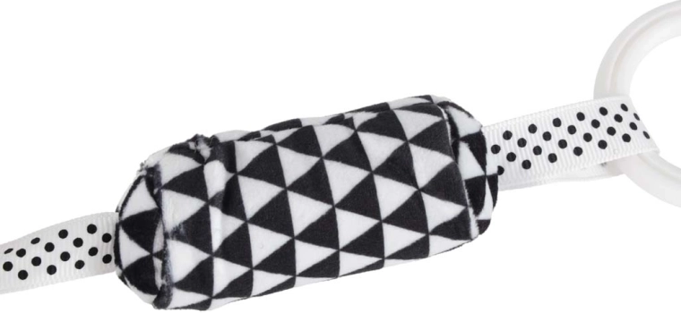Praktický klip/kroužek umožní rychlé připnutí k madlu kočárku, autosedačky nebo k okraji postýlky. Hračka tak zůstane vždy po ruce.