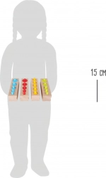 Dřevěné barevné válečky pomáhají dětem porozumět vzorům a činit rozhodnutí o správném umístění.