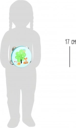 Tamburína je ozdobena obrázky se zvířátky jako liška, ježek a sova, což ji činí obzvláště přitažlivou pro děti.