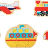 - 5 různých puzzle – rozmanitost motivů dopravních prostředků.