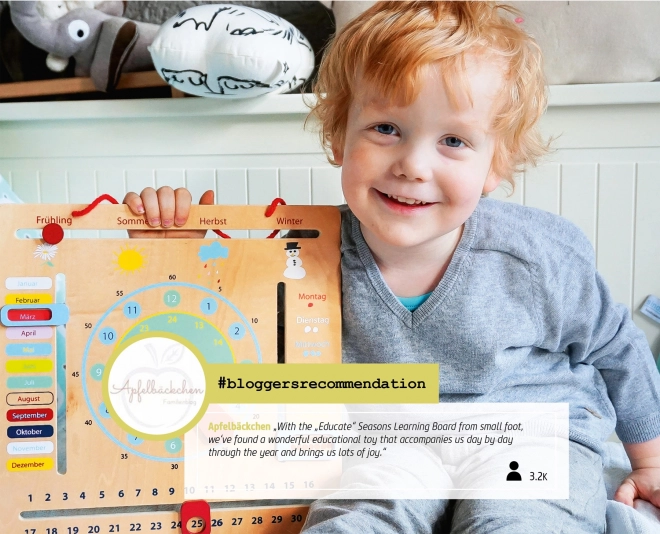 Obohaťte dětský pokoj o edukativní kalendář, který vnáší hravost do učení o čase a ročních obdobích. Kalendář obsahuje názvy v němčině, tudíž je ideální pro děti seznamující se s tímto jazykem. Konstrukce je ze 100% FSC dřeva, které zajišťuje, že je produkt ekologicky odpovědný a podporuje udržitelnost.
