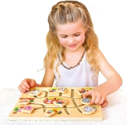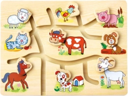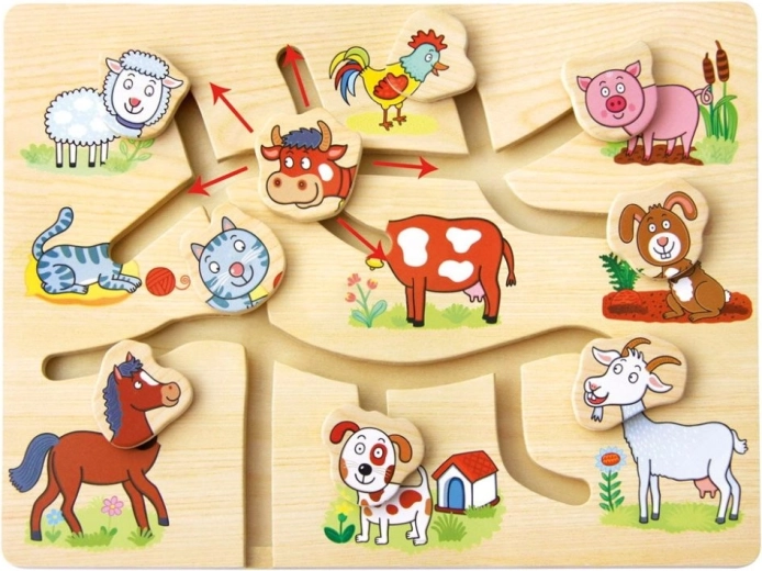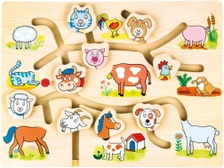 Objevte kouzlo této dřevěné skládačky s motivem domácí farmy, která je navržena pro povzbuzení dětského rozvoje. Bludiště je koncipováno tak, aby hravou a interaktivní formou pomáhalo zlepšit jemnou motoriku a koordinaci očí a rukou. Děti se nejen učí rozpoznávat jednotlivá zvířátka, ale také si procvičují prostorovou orientaci a logické myšlení.