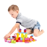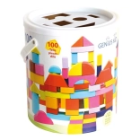 V kyblíku najdete 100 barevných kostek různých tvarů, které děti zabaví na dlouhé hodiny. Víko kyblíku slouží jako vkládací hračka, která pomůže vašemu dítěti učit se rozpoznávat různé tvary a zlepšovat jemnou motoriku.