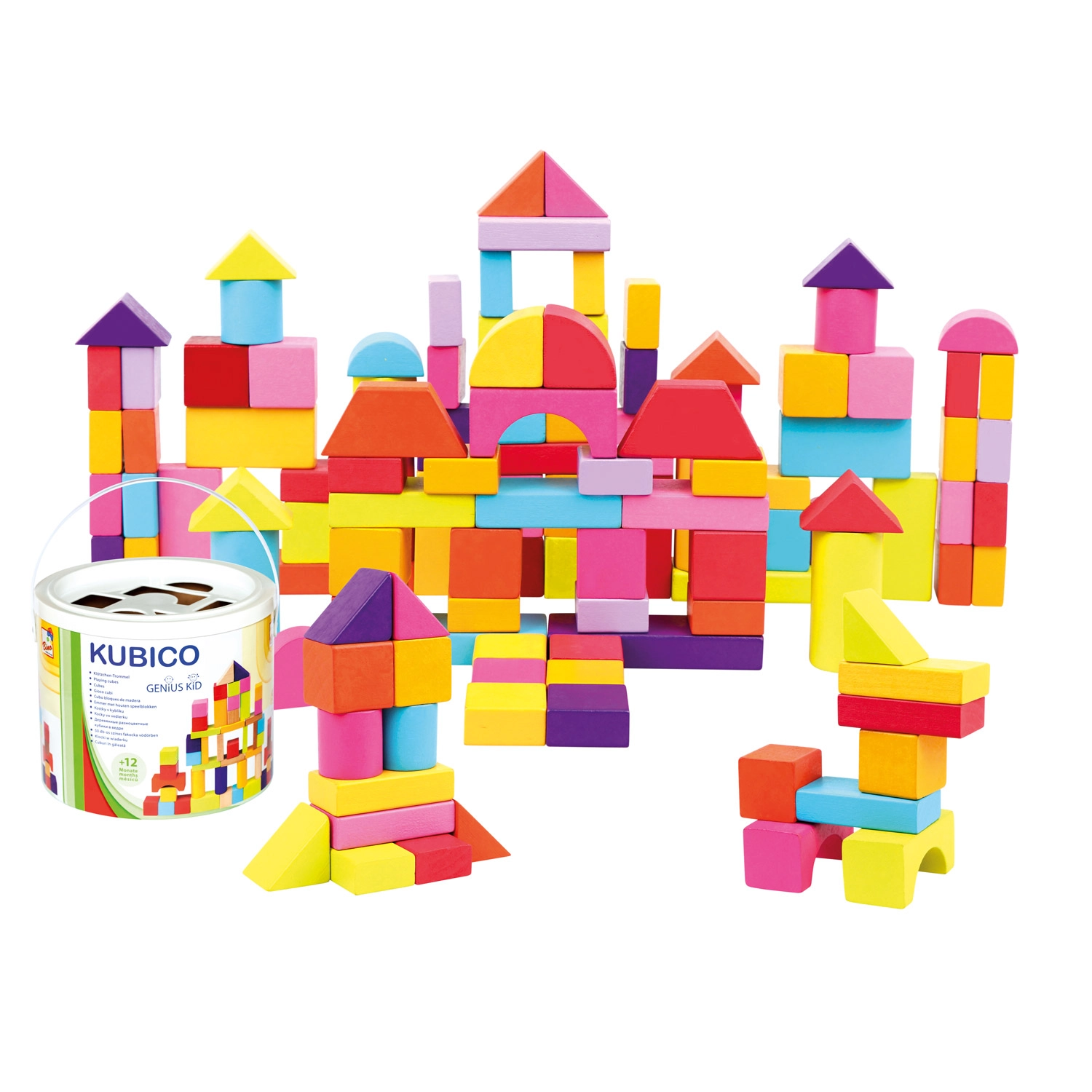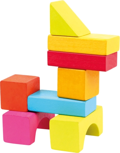 Ideální pro děti od 1 roku: kostky mají příjemně hladký povrch, pestré nezávadné barvy a tvarově pestrou škálu – od kostek a kvádrů přes válce až po oblouky a trojúhelníky. Hra s kostkami podporuje rozvoj prostorového vnímání, tvořivosti i koordinace oko–ruka.