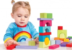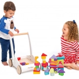 Součástí vozíku je 45 barevných kostek, které podporují kreativitu a rozvoj motorických dovedností.