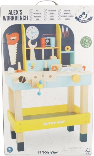 Dětský dřevěný ponk ALEX od LE TOY VAN nabízí vše, co malí opraváři potřebují pro realistickou hru. Díky pevnému zpracování z certifikovaného FSC dřeva a netoxickým barvám je bezpečný, odolný a šetrný k přírodě. Součástí je vestavěná cirkulárka, měrka a svěrák, horní police s háčky a spodní úložný prostor na další vybavení.
