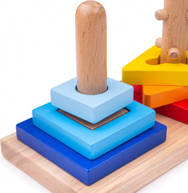 Objevte zábavnou dřevěnou vkládačku, která děti učí rozpoznávat tvary, barvy a velikosti. Tři pevné kolíčky a devět barevných dílků (kruhy, trojúhelníky, čtverce) podporují jemnou motoriku, koordinaci oko–ruka a logické třídění. Kvalitní dřevo, hladké zpracování a bezpečné barvy – skvělá volba pro první didaktickou hračku.