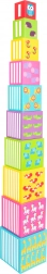 Veselé ilustrace zvířátek a výrazné barvy motivují děti ke hře, která zároveň učí. Každá kostka je označená číslem, takže si děti snadno procvičí počítání od 1 do 10, porovnávání velikostí a prostorové vnímání při stavění věží i vkládání kostek do sebe.
